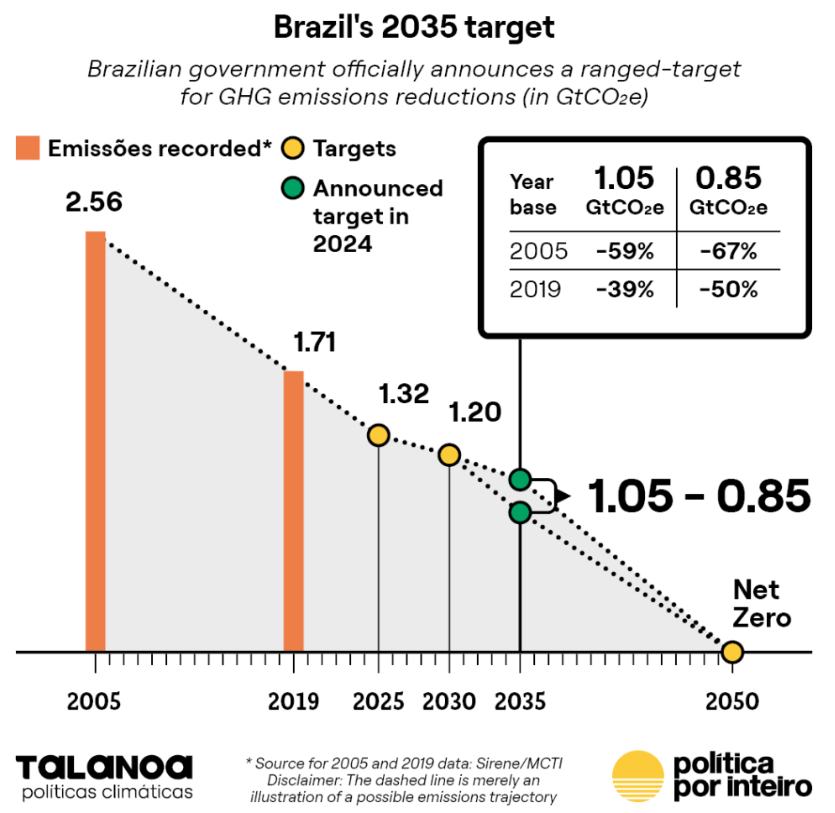 The Brazilian government published its latest Nationally Determined Contribution (NDC) during COP29. The updated climate plan aims to cut emissions by between 59% and 67% from 2005 levels by 2035, (equivalent to an absolute reduction of 850 million to 1.05 billion tonnes of CO2e), achieved mostly by relying on its carbon-storing forests. As a mark of its ambition it has also been pushing other countries to submit their NDCs by February, the UN’s deadline, while also encouraging governments to bring forward their net-zero target dates from 2050.1 2