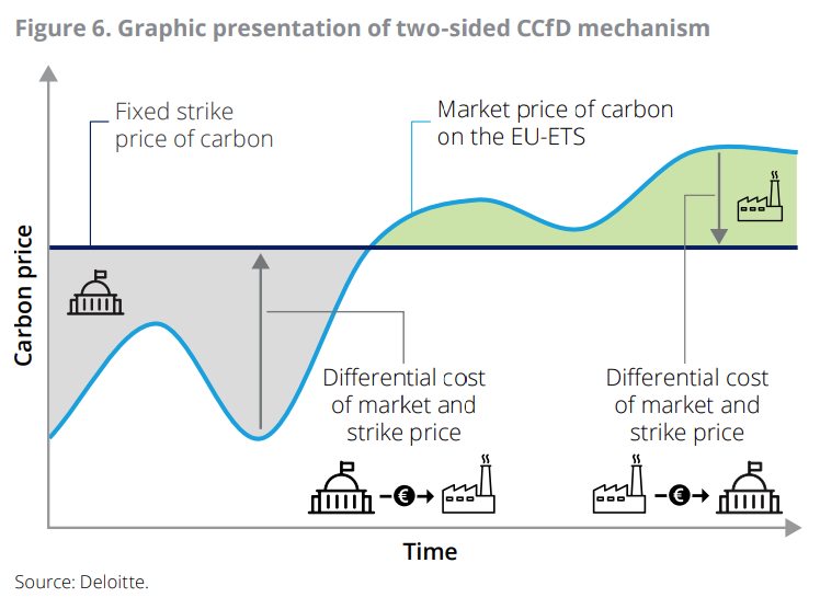 At present futures contracts can only be used to hedge the EUA price up to two or maybe three years ahead. Longer-dated futures contract typically exhibit much lower levels of liquidity, hampering the ability to hedge in size. Without the ability to hedge over a longer period than this, it’s very difficult for project developers to leverage the finance necessary to fund large-scale investments in decarbonisation. CCfDs help correct for this market failure, enabling developers to put a very long-term carbon hedges in place, of around 15 years.