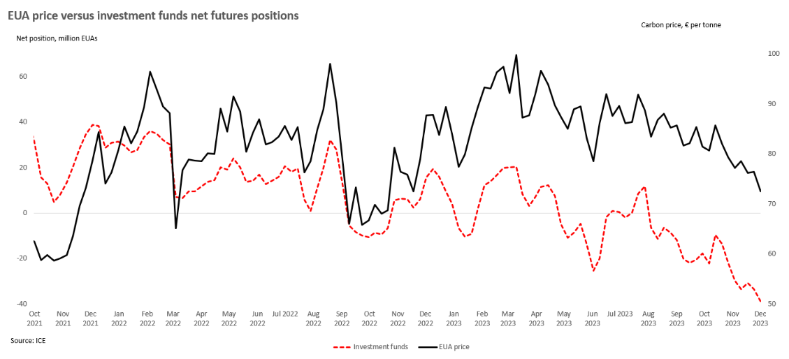 Their data (shown in the chart below) indicates that EU ETS carbon emissions spent most of the year well below 2022 levels, and indeed even recently they were significantly below 2020 levels. However, over the past few weeks Kayrros data suggests that carbon emissions from EU ETS covered emitters have rebounded strongly to levels more inline with December 2022.