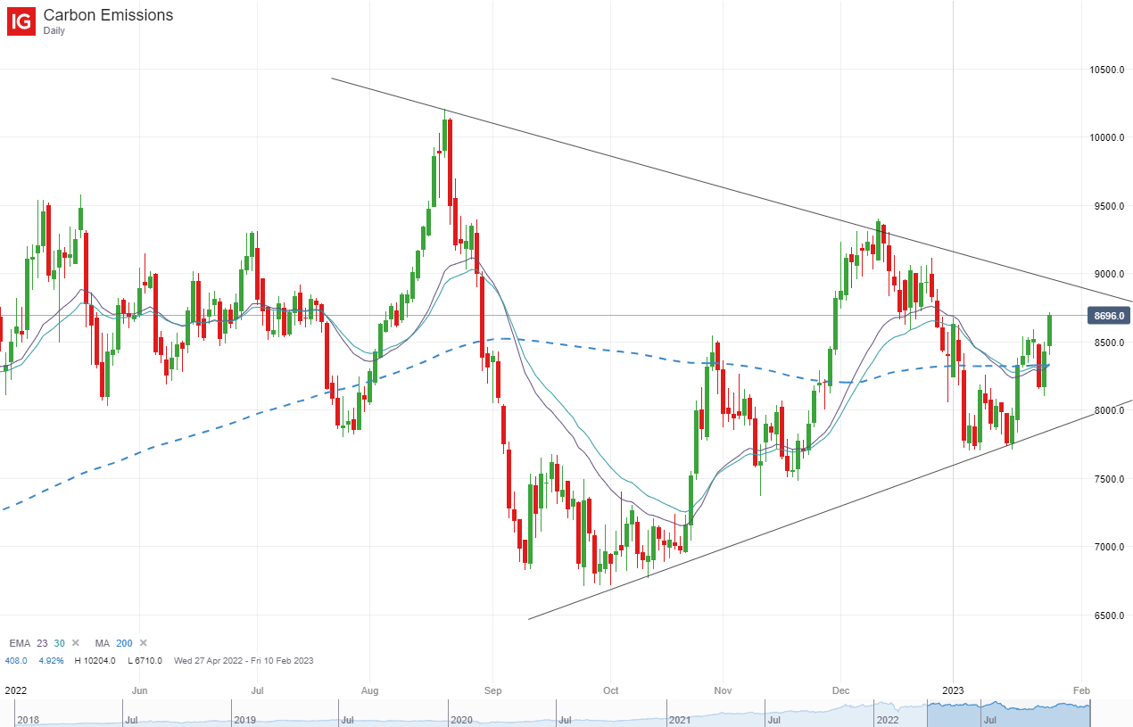 The EU carbon price has been trading in an ever narrower range over the past six months and is currently hovering a little above the 200-day moving average. As the end of year compliance deadline looms and the market looks forward to developments later in the spring, technical, fundamental and positioning data all point towards a market that is finely balanced.
