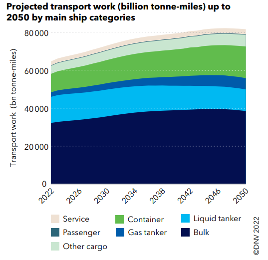 Maritime emissions are forecast to increase over the next few decades as global trade in energy, commodities and goods continues to grow. Seaborne trade in tonne-miles is projected to increase by almost 30% between 2022 and 2050, according to risk management and assurance firm DNV.1
