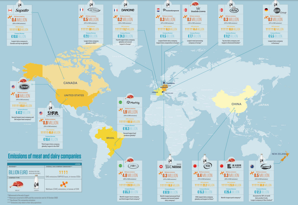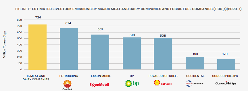 Together the emissions from these 15 companies exceed those of major fossil fuel companies such as PetroChina, ExxonMobil, BP and Shell. While oil and gas majors have been under sustained public pressure to reduce their emissions, large meat and dairy companies have not received the same level of scrutiny, despite their comparable emissions.