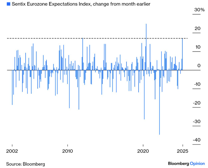 “Nobody doubts that this is the biggest turning point for German economic policy at least since reunification, and possibly much longer. The country’s frugal monetary and fiscal policies are born of folk memories of the Weimar Republic’s hyperinflation a century ago, and this is a decisive turn away from that.